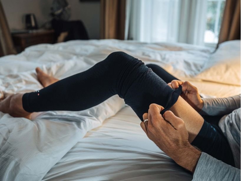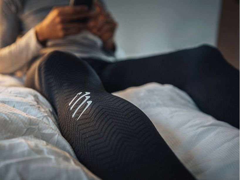 Разработени заедно с нашите професионални колоездачни клубове, за да подобрим възстановителния процес на колоездачите, които карат усилено ден след ден. Новото ни поколение компресионни продукти за крака са изцяло преработени спрямо миналото поколение, позволявайки ви да възстановите за двойно по-малко време. Благодарение на силната, медицински контролирана степен на компресия, са нужни само няколко часа носене след тренировка, за да усетите тяхното действие. FULL LEGS подобряват притока на кръв от стъпалата нагоре с помощта на компресионните панели, които се грижат за по-добрата циркулация на кръв, по-доброто усвояване на кислород от мускилите и премахват нежеланата млечна киселина, която се е натрупала след тежка тренировка. Компресията около бедрата намалява напрежението в тях, докато нашата уникална Waffle Effect плетка подобрявайки потока на лимфната течност, което бързо елиминира натрупаните токсини. С нашата технология ще намалите до 50% DOMS (или още така наречената забавена мускулна треска). Хипоалергичната, недразнеща кожата силиконова лента предотвратява нежеланото приплъзването докато ги носите. По-издръжливия, спрямо миналите модели, терморегулиращ микрофибър е изключително дишащ и удобен. След тежки тренировки или състезания, просто ги сложете на краката под панталона или шортите и вдигнете краката си висока за още по-бързо и професионално възстановяване. cyber monday