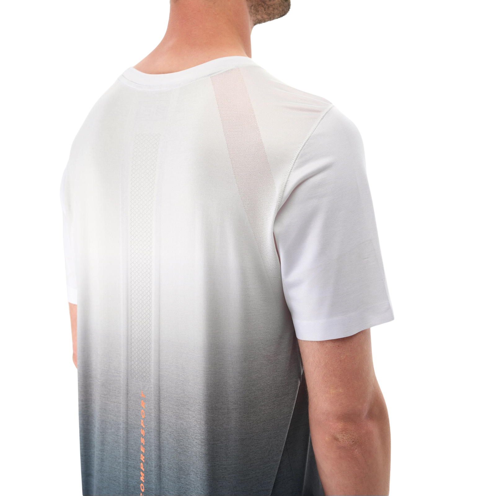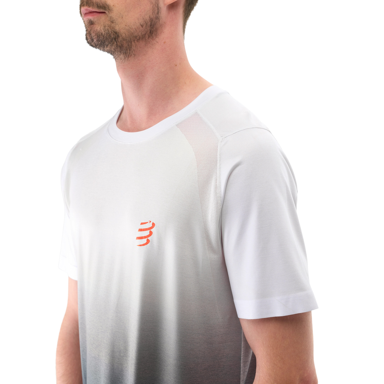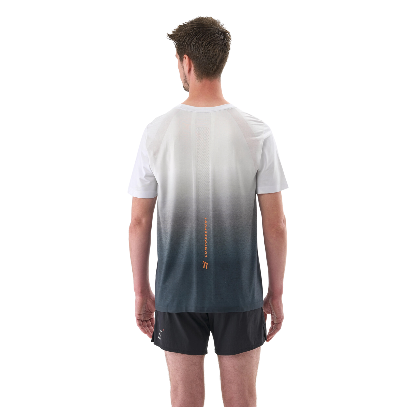 The short-sleeve Performance Shirt combines versatility with lightness, ready to handle both the challenges of training and the rigors of racing. Equipped with Compressport technology, the ultra-soft microfiber fabric and seamless design prevent any chafing, irritation or unpleasant sports odors. With a Regular fit that does not restrict movement and ensures optimal performance, as well as the characteristic thermo-regulating properties, it is the best choice for high-intensity loads, whatever your discipline. Strategically placed mesh on the front, under the arms and on the back provides optimal ventilation that quickly wicks away sweat and moisture, keeping you dry even when you pick up the pace. The stylish, round neckline clings smoothly to the skin, and the new sleeve design frees up the shoulder area for complete freedom of movement. Whether you're gearing up for an evening run or your next mountain race, you can count on the versatile Performance SS T-Shirt for excellent comfort and versatility.