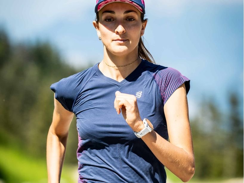 COMPRESSPORT Performance SS T-shirt W Mood Indigo/Magenta FW23