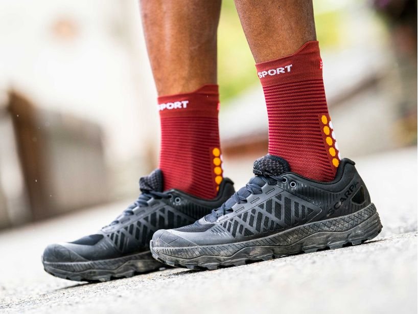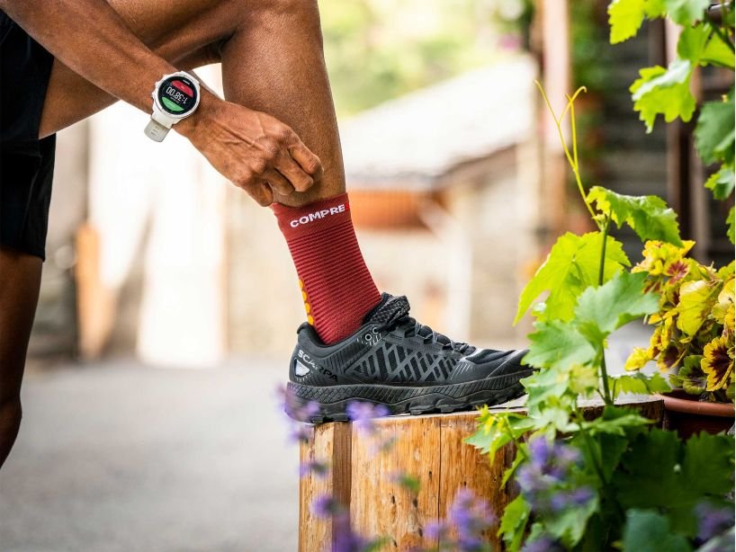 Technologies in the field of sports, in order to improve the presentation of athletes, are developing. Like running socks. For the brand new generation of our bestsellers Pro Racing Socks Run, we asked Compressport runners to tell us what they like, what they need and what they want. The result - a running sock, designed specifically to offer optimal thermoregulation and bubble protection, on the way to another personal result. The fabric of the matter is light and ventilated by taking quickly влагата и потта, така че краката Ви остават свежи и сухи, дори при горещи условия. По-широката предна част за пръстите предлага по-ергономично прилягане и комфортно усещане, позволявайки на пръстите да се “прилепят” интуитивно при всяко стъпване, даващо усещане за естествена и плавна крачка. Лекото плетиво около глезена предлага целенасочена подкрепа на дадената област, когато ускорите темпото, докато хавлиената подплата на големия пръст Ви предпазва от натоварването, и в последстие почерняване, на ноктите при по-дълги бягания. Средната опора за свода засилва микроциркулацията и предотвратява усукването и сгъването на тъканта, което Ви спестява болезнени мехури и дразнене. Над ахилесовото сухожилие две линии 3D.Dots добавят защита и допълнителна подкрепа на областта. Те обграждат редица чисто нови Flat.Dots за допълнителна вентилация. Под краката, модел от 3D.Dots (75%) и Flat.Dots (25%) възглавници въздействат и предлагат допълнително сцепление и вентилация, както и лека микростимулация, която помага за увеличаване на венозната циркулация на кръвта и предотвратявяне на умората с натрупването на километри. Височината на чорапа е по-ниска от моделите Trail и Bike, като това позволява максимално прилягане към крака и технологии, които са специално проектирани за изискванията на бягане по пътя. Ергономичен раздел отзад добавя нотка на комфорт и стил и ако забравите за коя дейност отивате, дисциплината е дискретно бродирана отвътре. Елегантният дизайн на този високотехнологичен чорап е верен на нашето ДНК представяне, така че всичко, което Ви остава да направите, е да тръгнете по пътя със скорост, комфорт и класа.