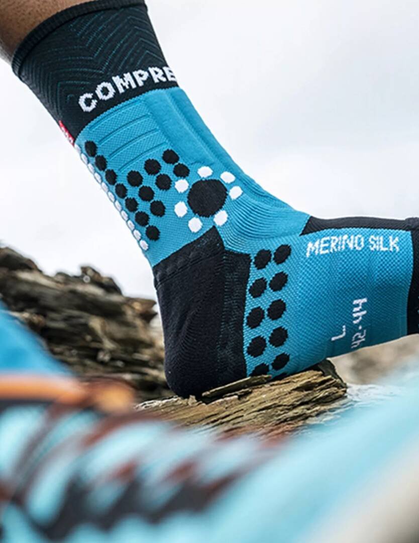 Предимствата на Trail бягането през зимата са много, но само докато краката ви withа топли и сухи. И точно тук се открояват чорапите PRS Winter Trail. Специално проектирани, за да комбинират компресия, защита и високопроизводителна топлина, тези чорапи за Trail ще ви запазят топли и стабилни дори при най-студените условия. Зоните на стъпалото, които обикновено се затоплят при Trail бяганията, се възползват от термозащитната комбинация от мерино вълна и коприна. Те се комбинират с вентилационни панели, които бързо отвеждат потта и влагата, гарантирайки, че краката ви остават сухи, когато увеличите темпото.