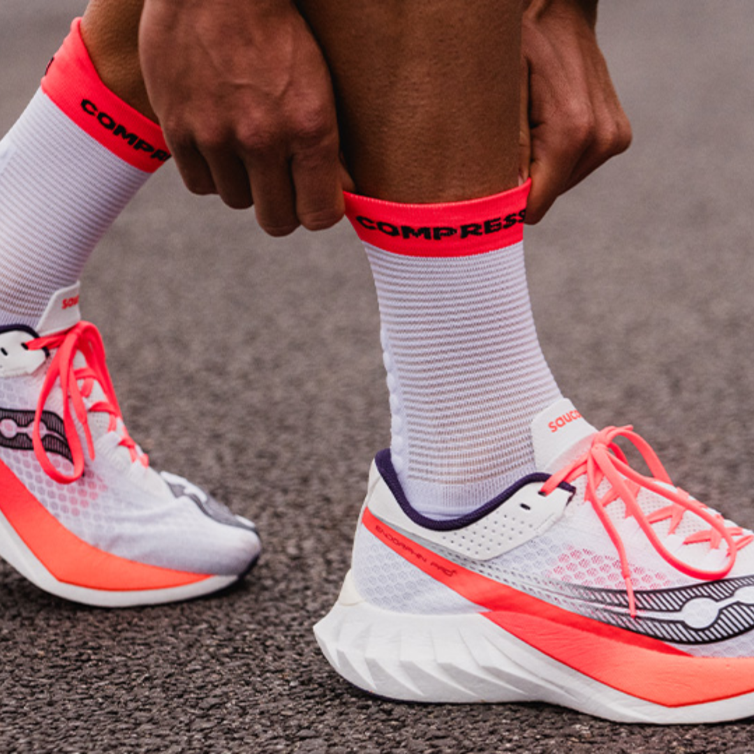 COMPRESSPORT Pro Racing Socks v4.0 Run High White/Fluo Red SS25