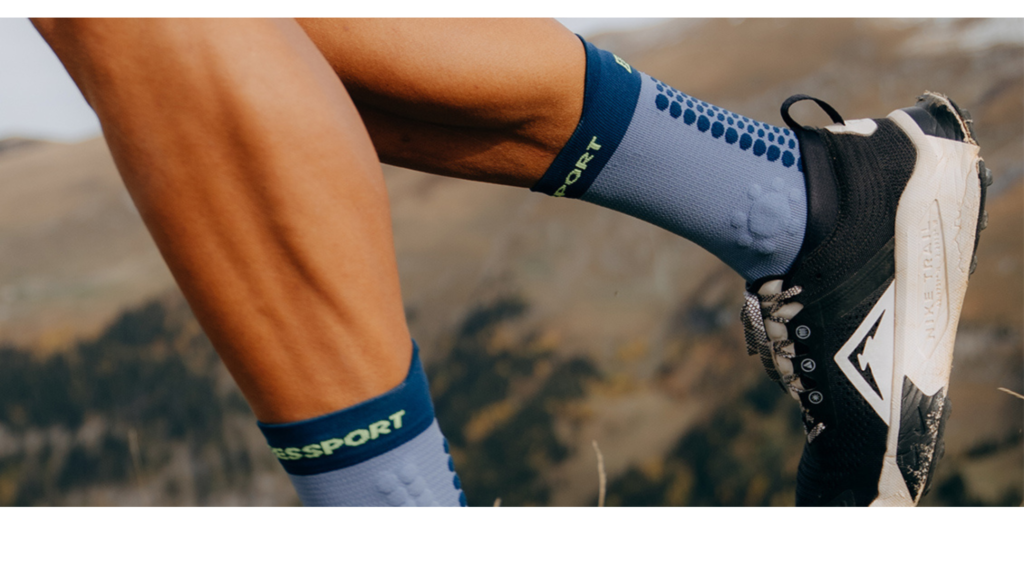 - Удебелен плат в ключови зони за защита на глезена, пръстите и ноктите от грубите изисквания на трейл бягането и увеличаване общата издръжливост на чорапа.