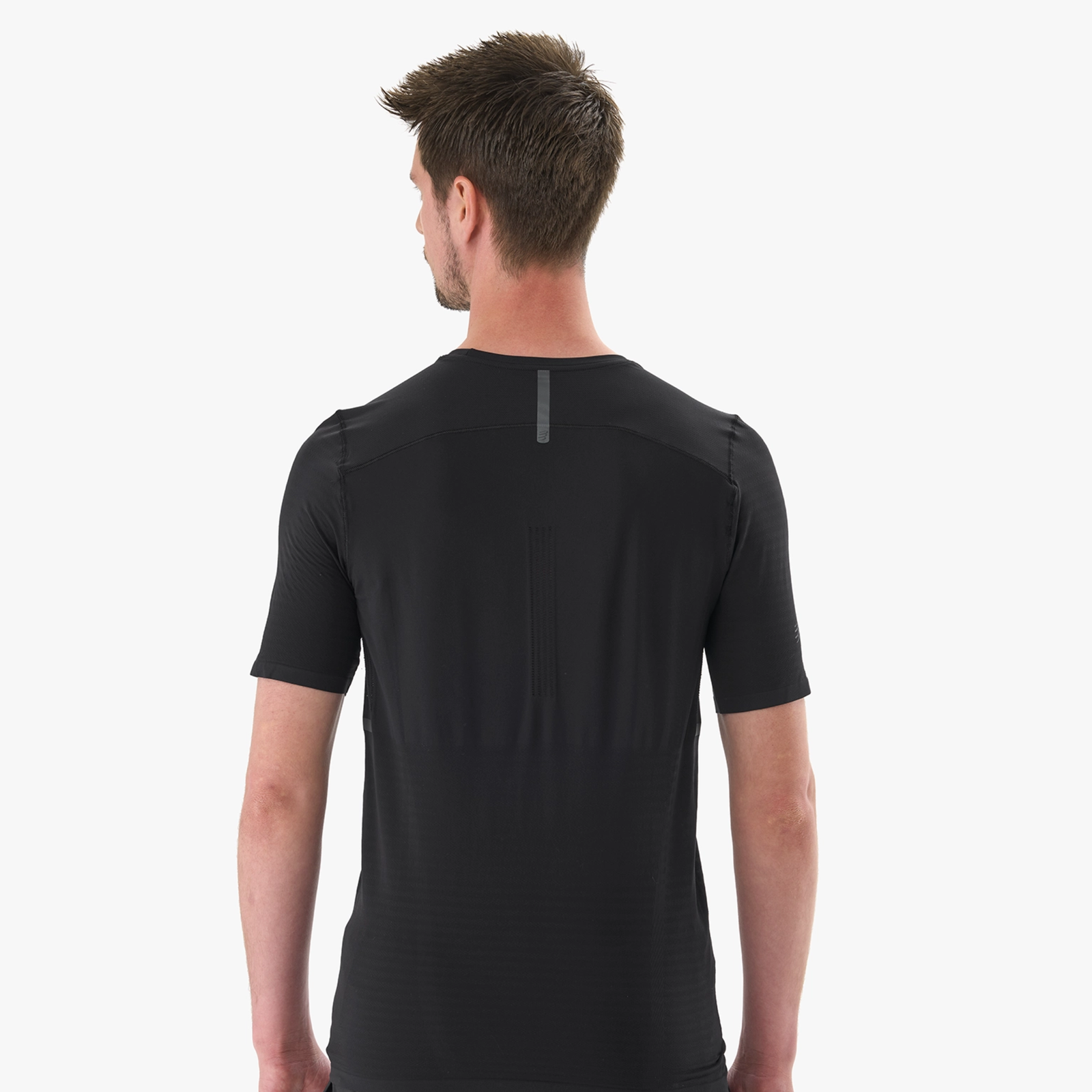 From the adrenaline rush of the starting line to the triumph of the finish, every race demands the best of us. The Pro Racing Ultralight T-Shirt is part of Compressport's premium Racing line designed for road runners looking for peak performance to achieve their goals. Lighter and more breathable than ever, the all-over knit structure provides maximum ventilation and sweat wicking when you pick up the pace: Oxygen knit on the sleeves and bottom is combined with larger openings on the spine, chest and underarms for maximum lightness and breathability. The round neckline and flat seams fit smoothly against the skin to reduce the risk of chafing. The new Satin sleeve design adds a modern look and provides optimal range of motion, while reflective details on the back and sides add visibility when the sun goes down. Combine with the Split Racing Shorts for extra speed and fly to a new personal best.